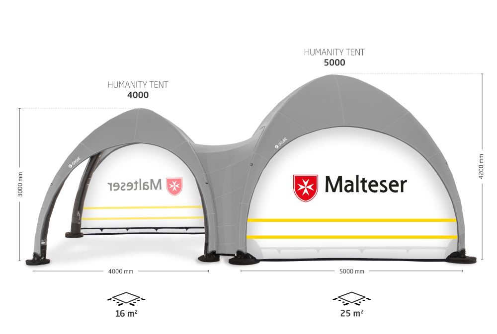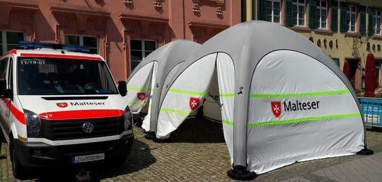 Die Malteser helfen Menschen in Notlagen und wir helfen bei der richtigen Ausstattung! Unsere pneumatischen Schnelleinsatzzelte wurden speziell für den schnellen Einsatz unter schwierigen Bedingungen entwickelt.