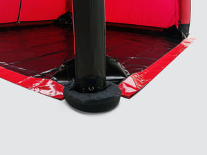 Die Enden der Bodenplane werden im Zeltinneren hochgeklappt, sodass kein Wasser von unten hineinlaufen kann. Das Produkt schafft somit die Möglichkeiten auf Untergründen aller Art unter dem Schnelleinsatzzelt von GYBE arbeiten zu können. Durch das robuste Planen-Material kann die Bodenplane über Jahrzehnte eingesetzt werden und ist deshalb die Musterlösung für alle Feuerwehren und Hilfsdienste. Denn selbst bei Beschädigungen lässt sich die Bodenplane mit geringstem Aufwand flicken.